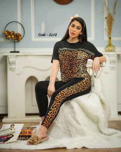 ست تیشرت و شلوار چاپ نگینی زنانه قواره بزرگ پلنگی کد 3270