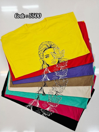 تیشرت زنانه لانگ چاپ نگینی و مرواریدی کد 5500