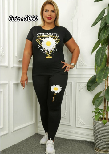 ست تیشرت و شلوار زنانه قواره بزرگ گل بابونه کد 5060