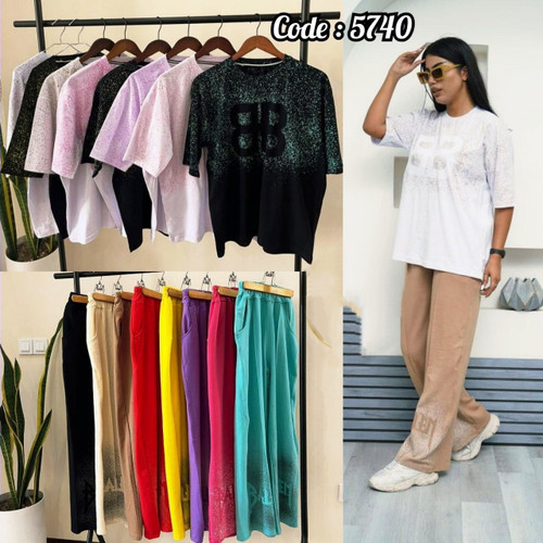 ست لش زنانه بالنسیاگا تیشرت پنبه شلوار گلکسی درجه یک کد 5740